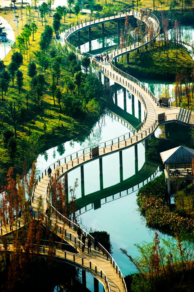中山公园 位于城区西隅,建于1943年,园内浓荫覆盖,阴凉清爽,西河流水弯曲穿园,河畔老树横枝拂水,安澜亭、六角亭,纪庆亭等亭台楼阁建于河畔,古桥流水,景色优美迷人,是人们游览、休憩之地。