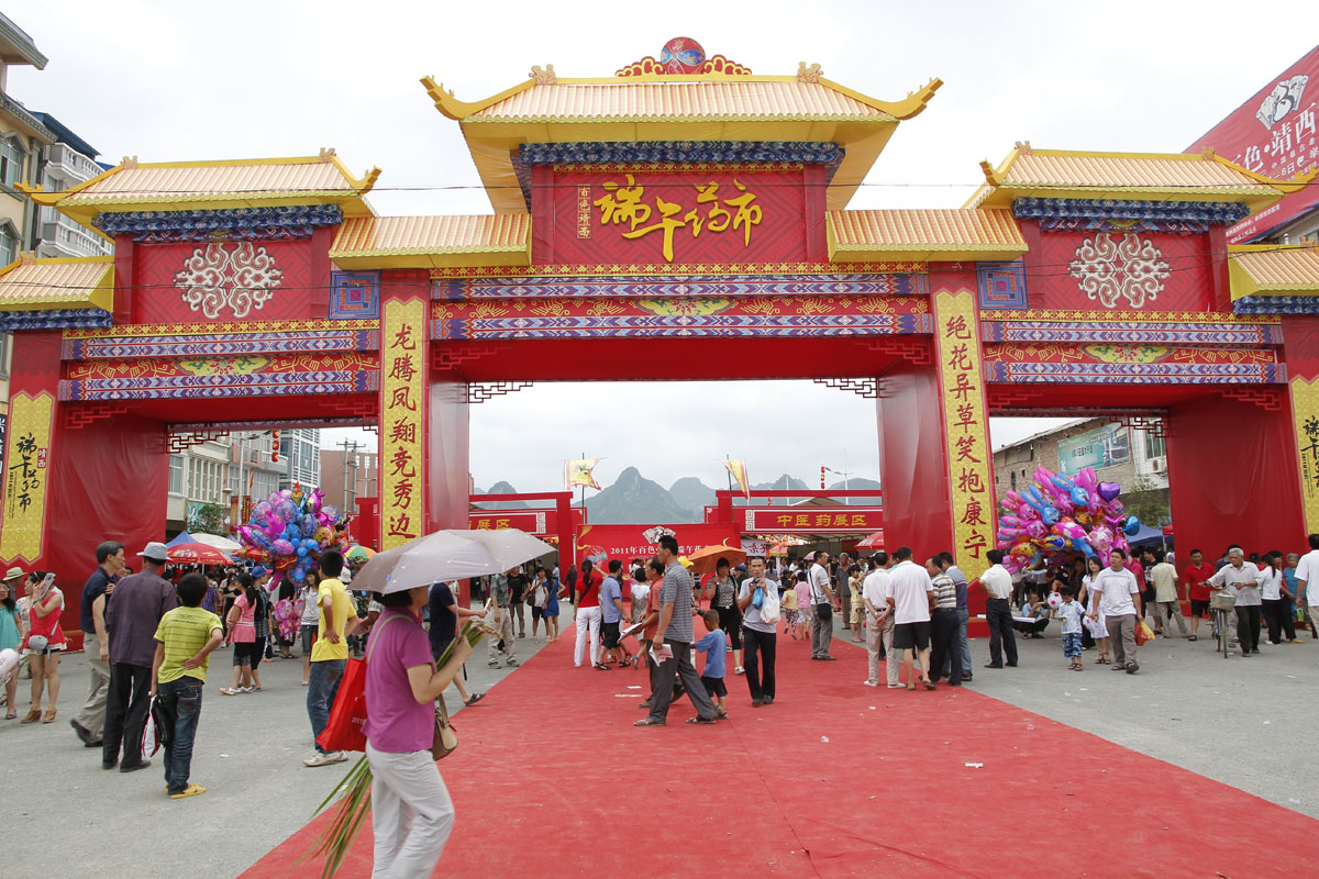 端午药市 靖西壮族传统的节日,农历五月初五,人们纷纷把自己从山上采集下来的草药拿到集市摆卖,各类草药数百种以上,药摊摆满街道两旁,香辛药味四溢,赶药市的人成千上万,这一天家家户户都喜欢买进一些草药备用,也表示以新鲜药气来消炎除病。