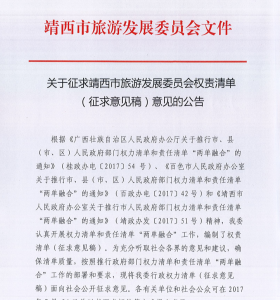 关于征求靖西市旅游发展委员会权责清单(征求意见稿)意见的公告