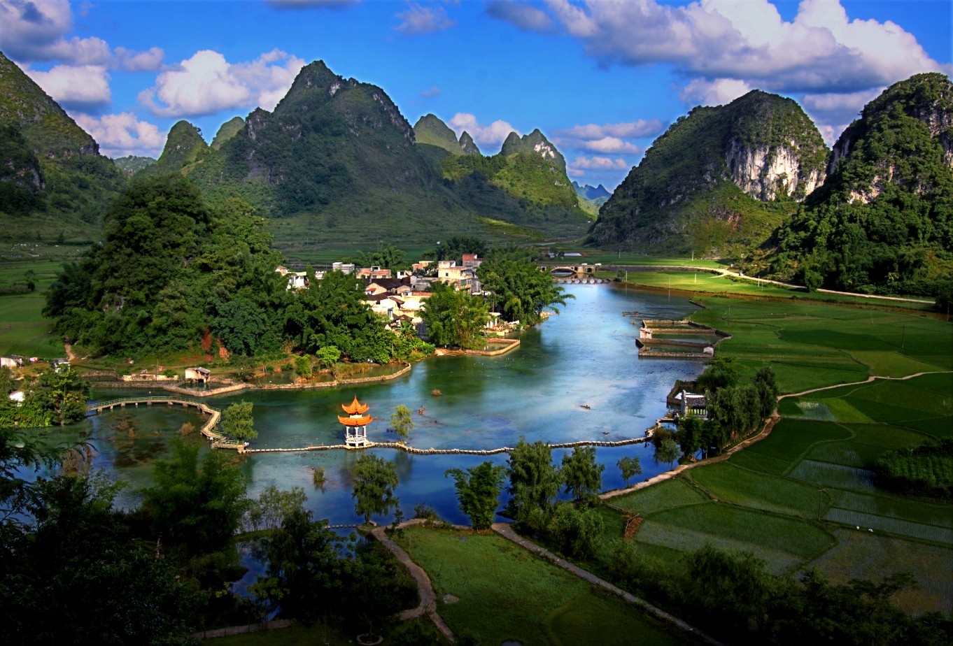 鹅泉自古以来就留下许多美丽的传说,有杨媪养鹅泉的动人传说;也有三月三官民祭鱼的习俗。鹅泉青山环绕、田园如画、翠竹婆娑、水清如镜、四季不涸、盛产鱼虾。到那里您可以欣赏到一幅幅画卷式的壮乡田园美景,体会着山情野趣的韵味。我国著名画家关山月先生游览鹅泉时曾挥毫题词:“鹅池跃鲤”,日本游客称之为“天下第一水”。鹅泉为中国西南部的三大名泉之一(大理的蝴蝶泉、桂平西山的乳泉),又是亚洲第一大跨国瀑布——德天瀑布的源头,也是中南地区母亲河——珠江的源头之一。
