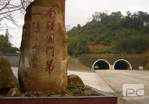 4、 七星山顶上的军事工事“十二道门”是我国南疆边防重地,这里是通往越南的咽喉要道,历代兵家必争之地。据载:古时(1041-1052年)交趾王朝莫敬耀率象队入侵我归顺州(今靖西),就是从此通过。法国侵略军,侵华日军亦从此过境掠屠我边民。为御外侮,清光绪年间,广西督苏元春临边堪察,令提督壮勇巴图鲁李极光督造,都司蔡仕祥主持建造。在龙邦边防关口我方一侧的古马岭(今其星山)顶峰建造十二道门。古堡设计考究,建造奇特,结构坚固严整,外观呈半裸露形梅花壮,内观如圆形,中央为地下穹形大厅,宽约四十平方米,呈“米”字形,有四条通道分别朝东、南、西、北方向延伸,每一道通出口处与连接处均有一天窗一拱门,共十二道,十二门,道道相连,门门相通,置身其内,纵横交错,有入八挂阵图之惑。北面通道的第一拱门上方镶有一石碑,刻着苏元春提写的“边民永赖”四个大字,十二道门左前方东西两道各设石墙为防线,分别镶有“长城巩固”、“近抗南交”两块石碑。在1979年自卫还击站时在此设立了前沿指挥所,洞壁上至今留下炮弹痕迹,战后,为适应现代化战争特点,将十二道门防御体系重新改造,其主体结构原样保存,在北面通道处修三道拱门,在古堡大厅脚下新修四十级螺旋状十字形永备地道,上连大厅中央,下通山腰环形堑壕,整个防御体系集作战、训练、生活为一体。
