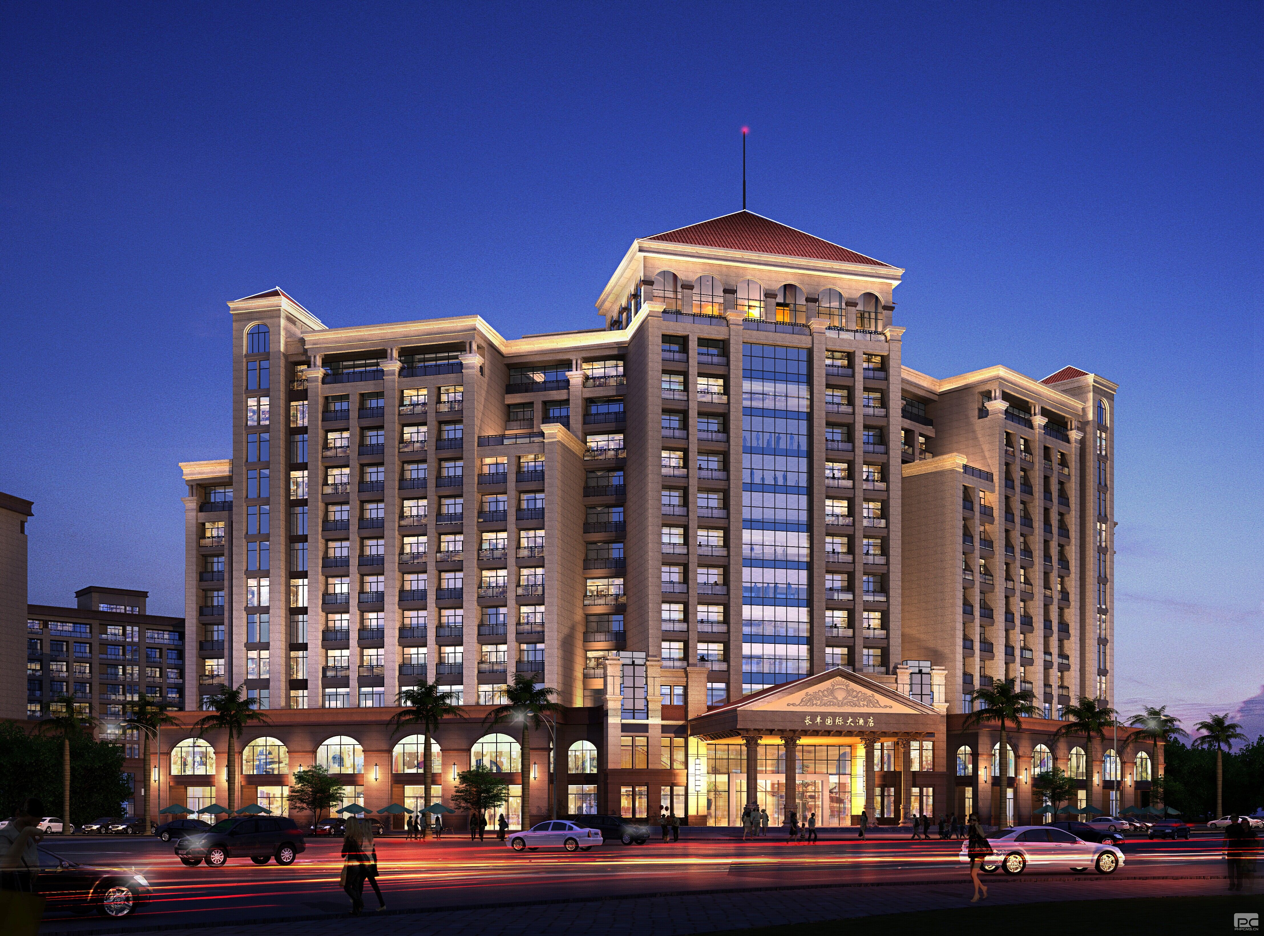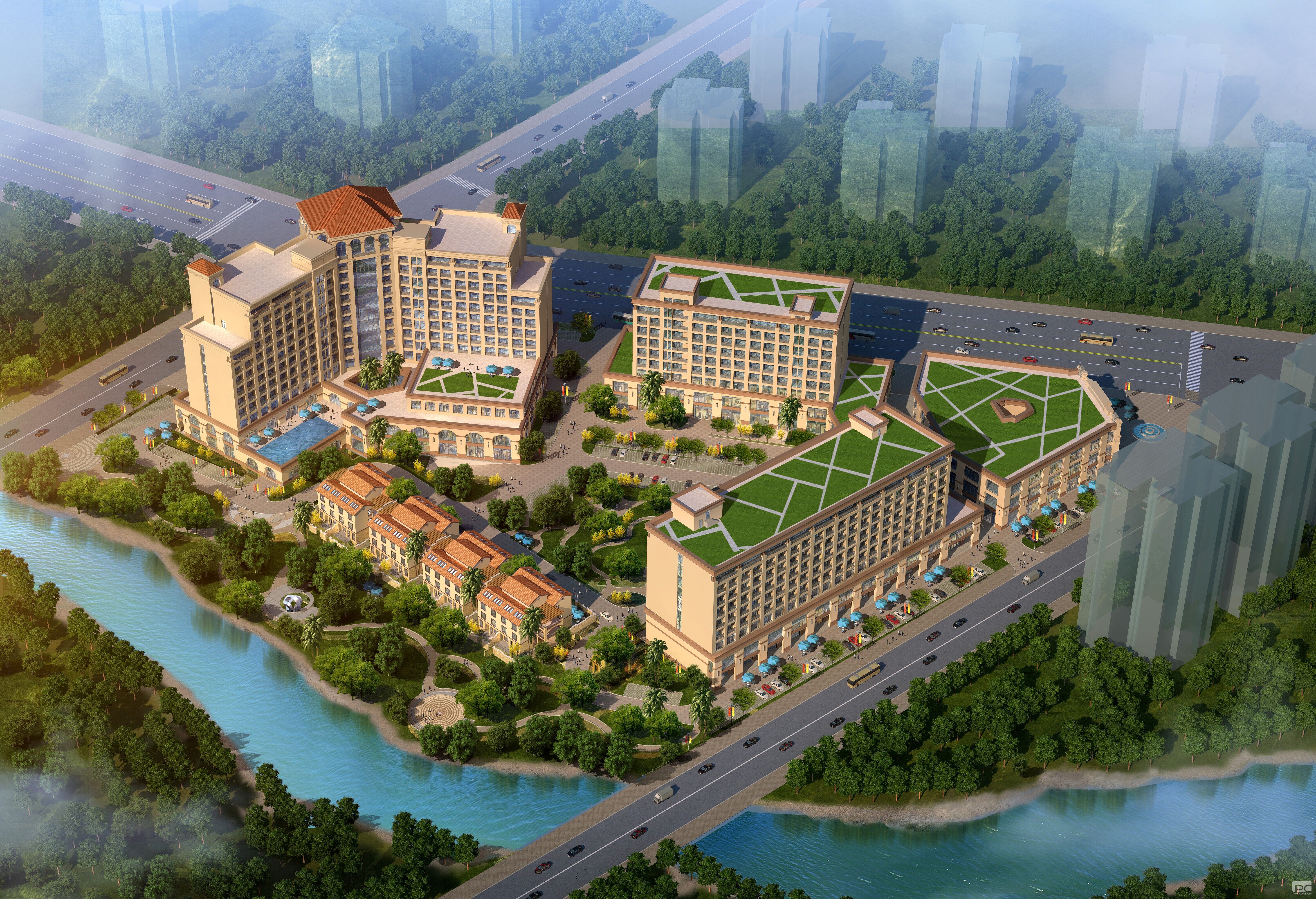 四、项目规模及效益: 酒店用地55亩,酒店主楼13层,配套9层商务办公、9层酒店式公寓及8栋3层休闲娱乐会所及沿道路布置配套商业。酒店拥有近3000㎡的中心景观花园,为客人提供优美的度假休闲环境。酒店总建筑面积达91640㎡。酒店主楼拥有包括豪华标准间、套间、总统套房在内的300间客房,最小房间使用面积大于50㎡,各客房设置景观阳台为客人提供优美的观景环境。