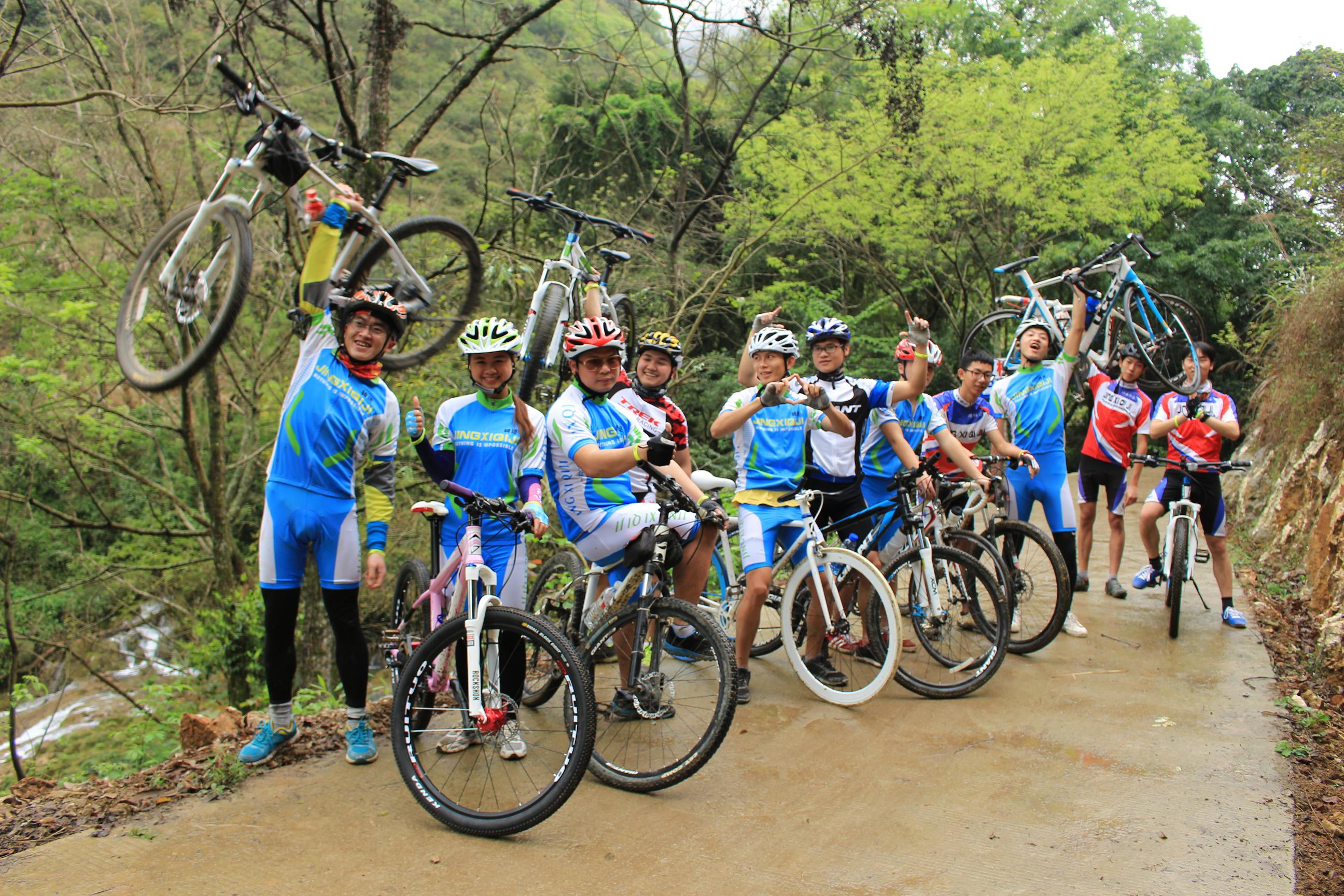 记者在采访途中偶遇经过二郎景区骑行绿道的骑行团队