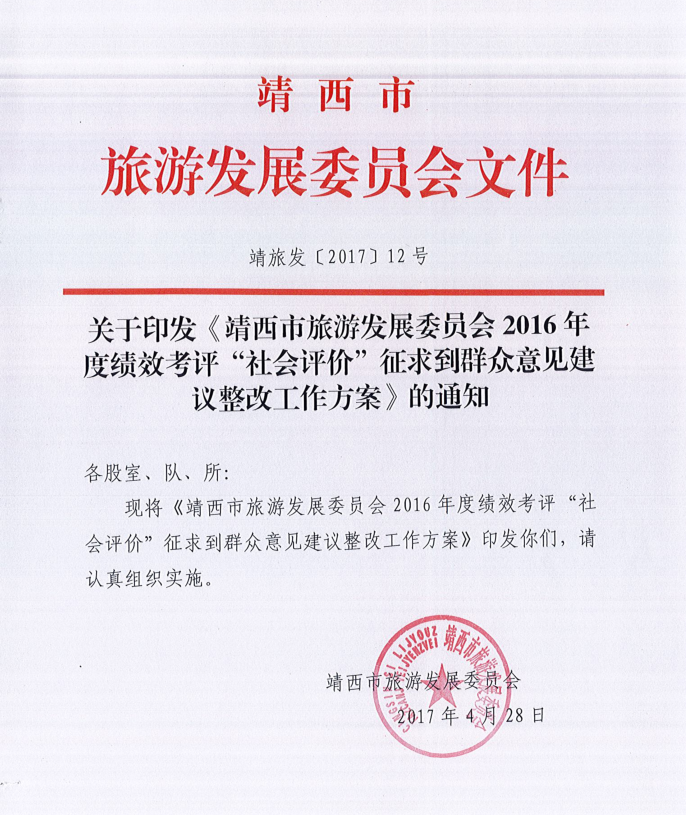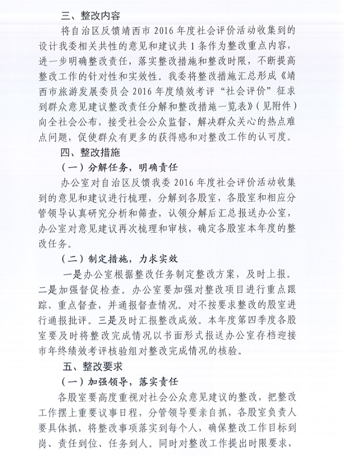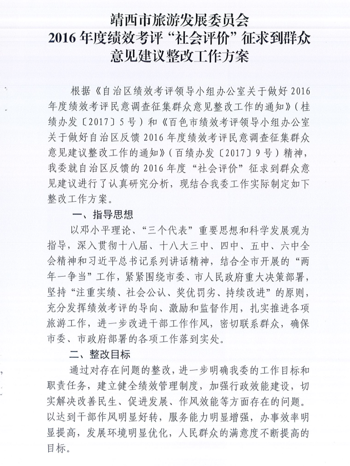 靖西市旅游发展委员会2015年度绩效考评存在问题整改工作方案