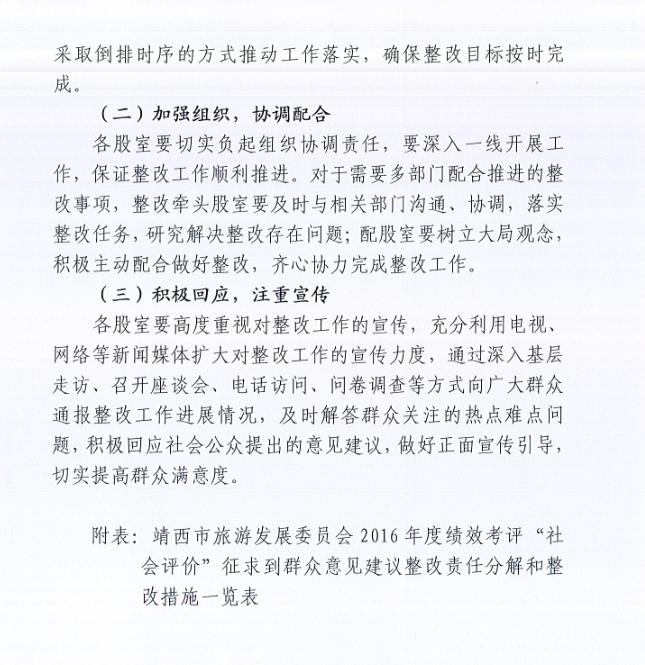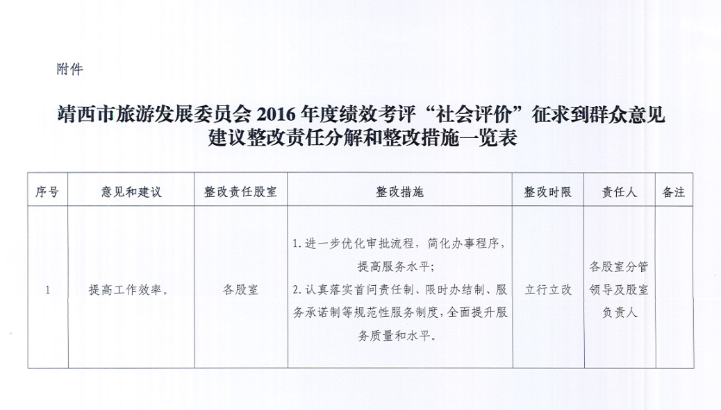 2016年度绩效考评“社会评价”征求到群众意见建议整改责任分解和整改措施一览表